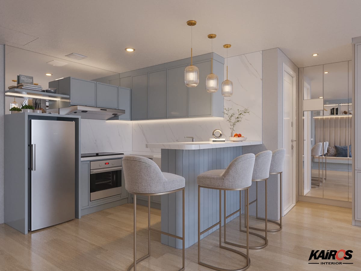 Tidak hanya untuk kamar tidur, warna pastel cocok untuk diaplikasikan di area pantry sehingga membuat aktivitas di pantry lebih nyaman.