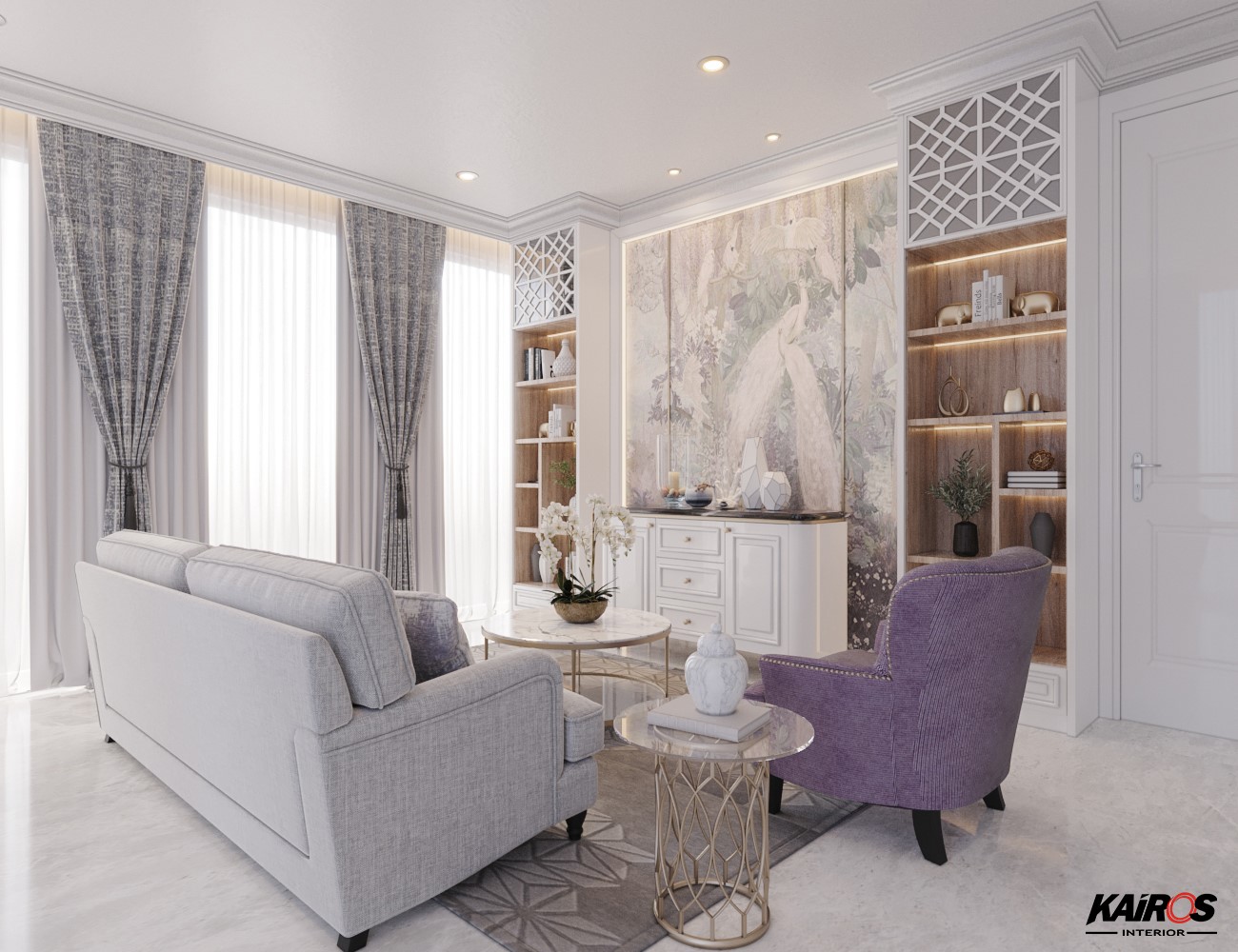 Hunian dengan gaya desain klasik modern biasanya menggunakan warna netral seperti putih dipadukan dengan warna emas yang akan membuat nuansa megah dan mewah pada hunian.