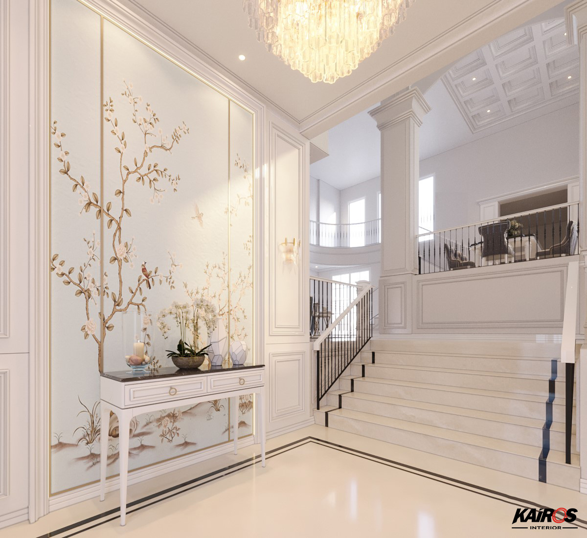 Menambahkan meja konsol pada area foyer untuk menciptakan kesan dinamis, tampilan mewah dan juga timeless classic pada ruangan.