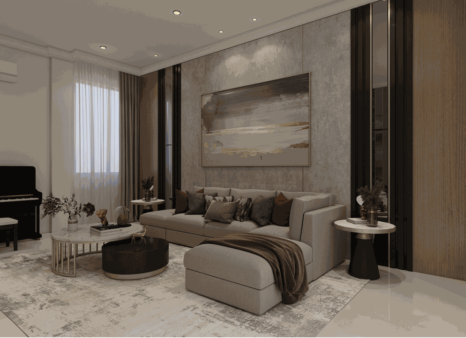 Penggunaan sofa dengan bentuk L dapat meminimalkan penggunaan ruangan. Anda bisa memilih sofa dengan bentuk L karena bisa dimasukkan hingga ujung dan tidak menghalangi jalan saat keluar masuk.