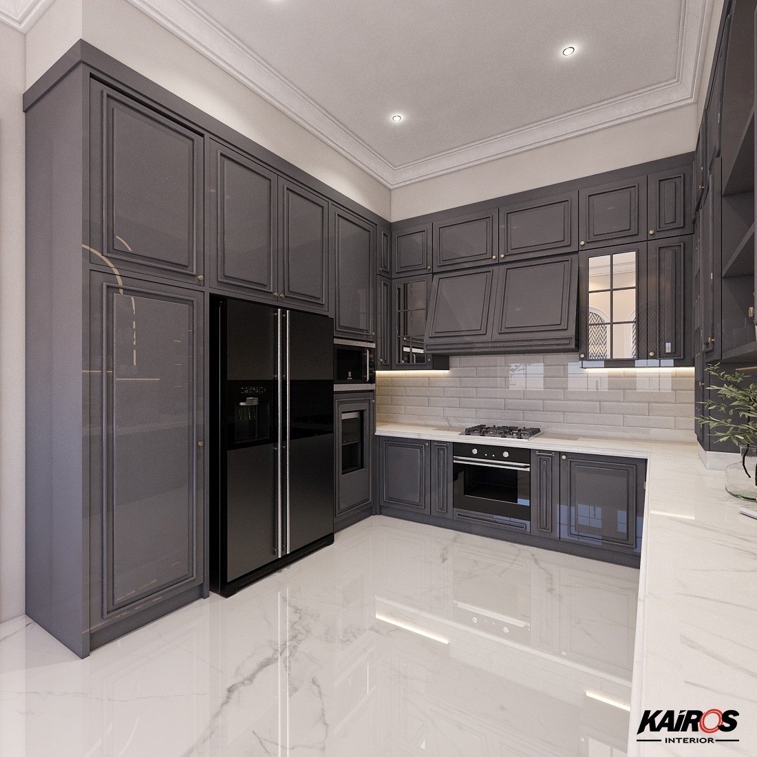 Pantry set letter U berbentuk seperti huruf "U" yang cocok untuk dapur berukuran cukup besar.