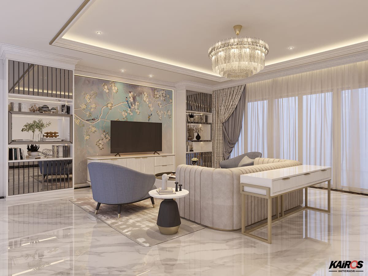 Penggunaan warna putih, cokelat muda, abu-abu, cream berperan penting dalam konsep classic modern.
